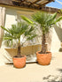 Her har Palmekongen sammensat et fint palmesæt bestående af to hørpalmer (Trachycarpus Fortunei) i vores mest populære størrelser: 160-190 cm og 120-140 cm. Det perfekte startsæt til dig, der vil købe palmer til haven for første gang, eller til dig, der vil supplere med flere palmer til din samling.